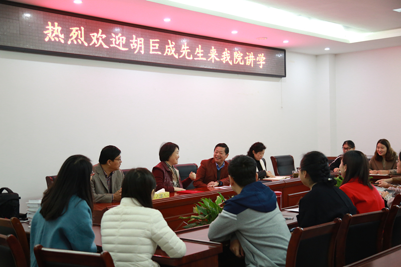 10月17日上午,在社科楼311会议室,河南日报报业集团驻信阳记者站站长胡巨成受聘德赢官网硕士研究生导师,并作题为“人物访谈与新闻采写”的学术报告。院长焦素娥,副院长刘想如、刘新建,教师代表及2017级广播电视专业研究生参加了报告会。